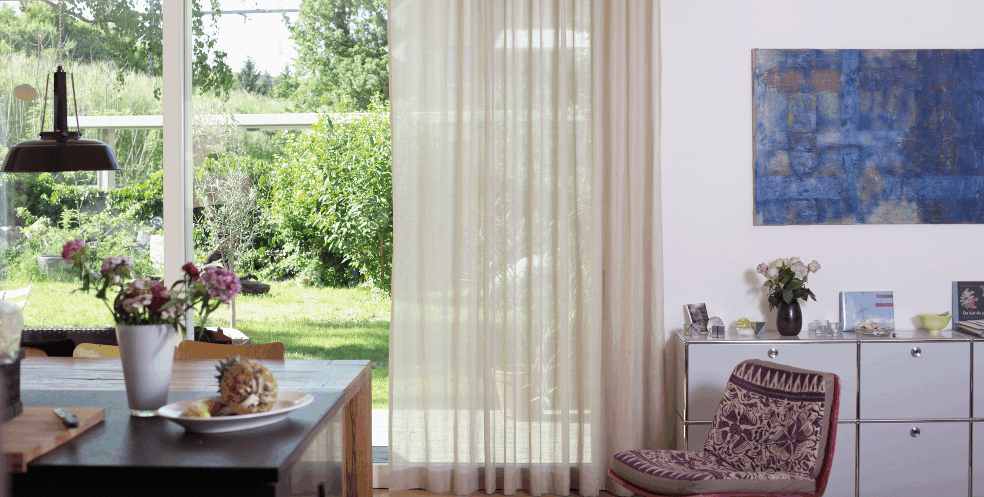 Weisse Vorhänge sind ein zeitloser Klassiker und verleihen jedem Raum eine moderne Note. Ob in einem passenden Weisston oder einem sanften Beigeton, unsere Tagesvorhänge bieten einen schlichten, eleganten Rahmen. Sie dienen nicht nur als Sicht- und Sonnenschutz, sondern tragen mit ihrem weichen Textil auch zu einem behaglichen Ambiente bei. Zudem verbessern Textilien merklich die Raumakustik, was für ein angenehmes Raumgefühl sorgt.