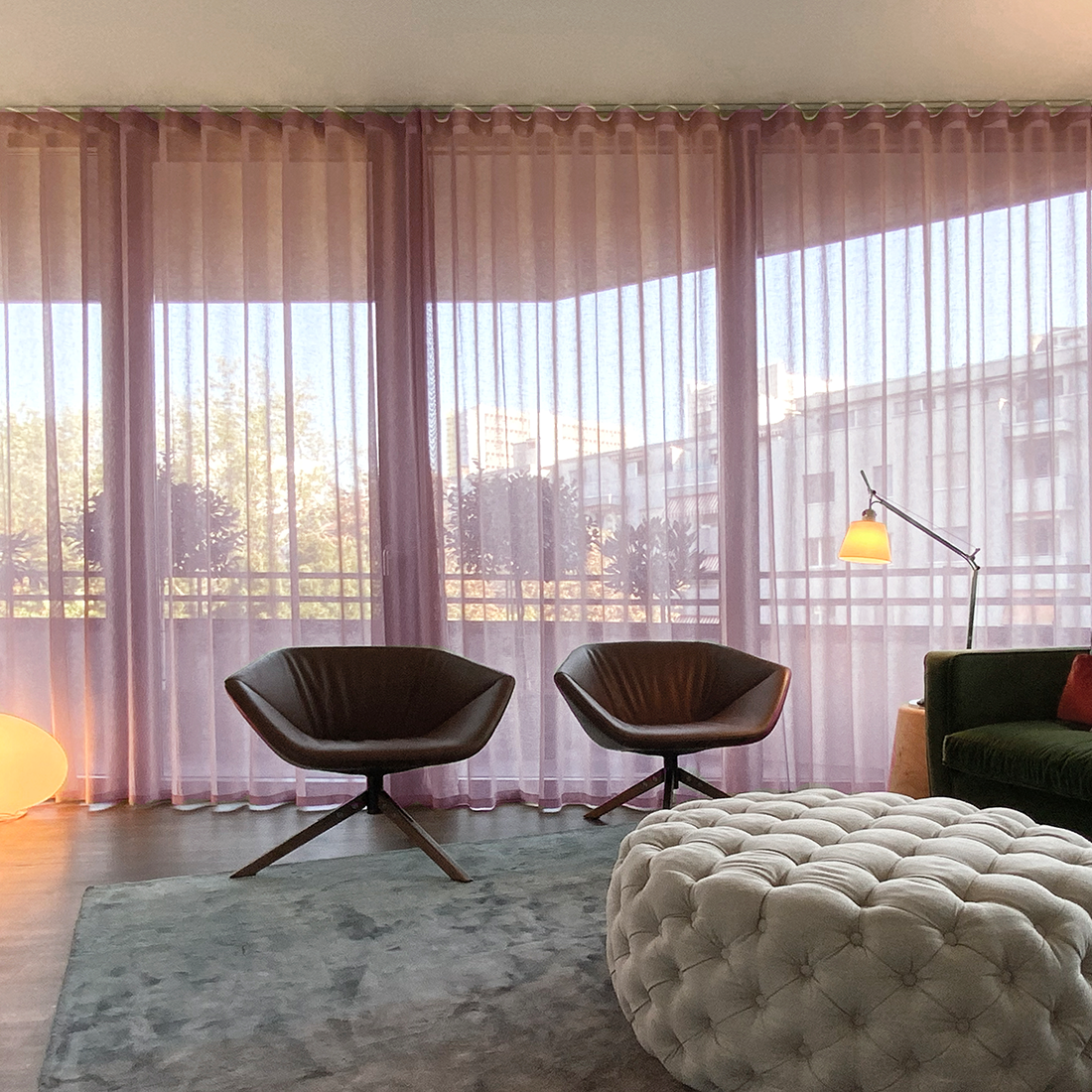 Der Stoff Sinfonia von Creation Baumann bietet einen Idealen Rahmen für alle Wohn- und Arbeitsräume. Am Tag lässt der Stoff viel Licht in den Raum und am Abend sorgt er für ein ausgewogenes Ambiente. Ausserdem ist der Sinfonia auch akustisch wirksam und vermindert den Wiederhall effektiv. Wenn das noch nicht reicht, gibt es diesen Stoff auch noch mit einer höheren Akustikkomponente, den "Sinfoniacoustic" .