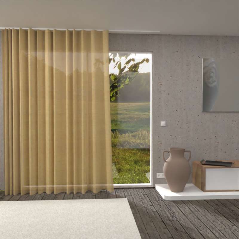 Unser raumhoher Halbleinenstoff Ginger kombiniert die natürliche Optik von Leinen mit der Pflegeleichtigkeit von eingewobenen Synthetikgarnen. Entdecken Sie dieses vielseitige Material in unserem Laden oder nutzen Sie unseren bequemen Service, um sich den Stoff zur Ansicht nach Hause senden zu lassen. Der Stoff Ginger ist exklusiv bei Idealraum erhältlich, inklusive professionellem Nähservice und Massnahme vor Ort in Basel.