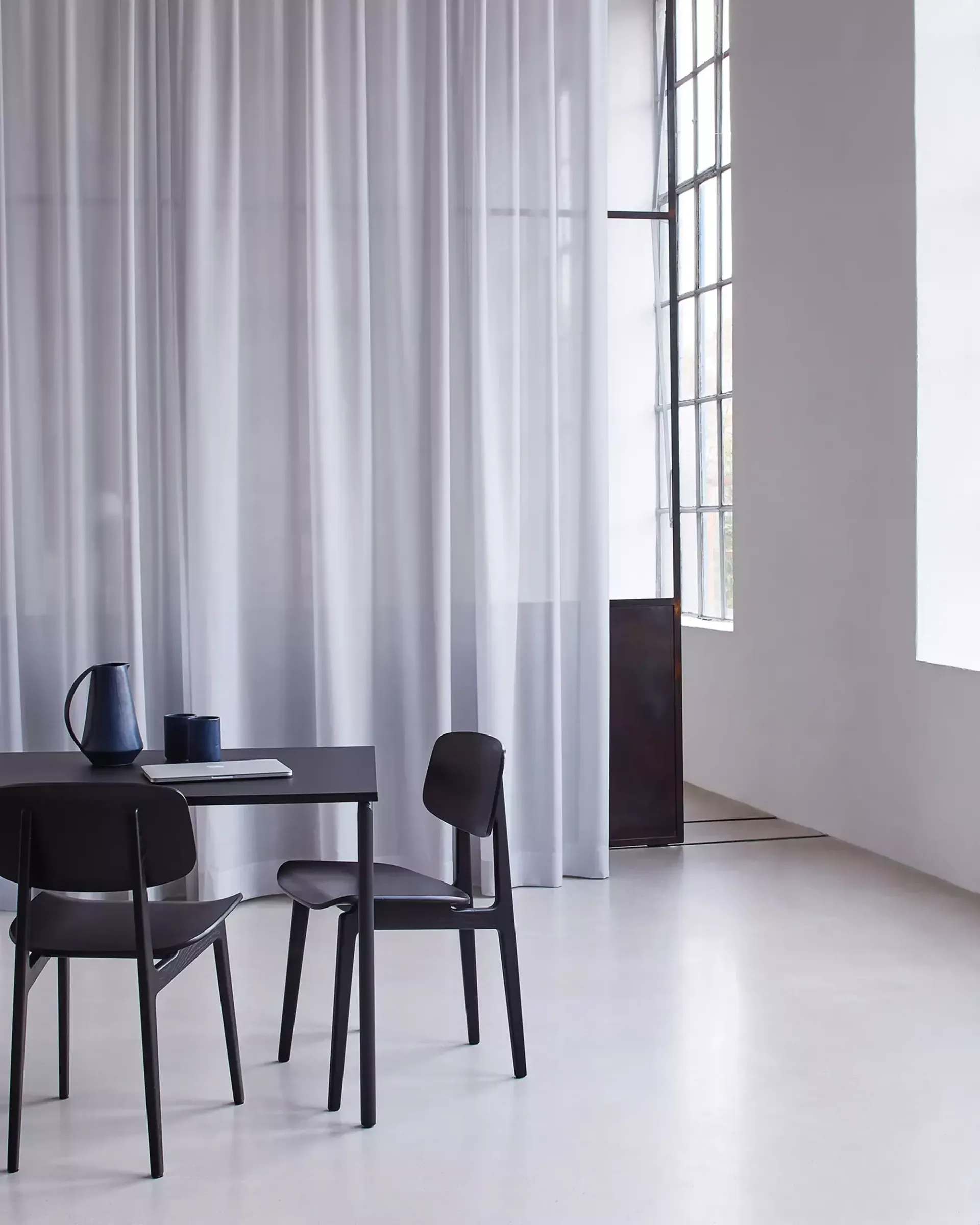 Der Stoff Sinfonia ist sehr lichtdurchlässig, dennoch entsteht im Raum eine private Atmosphäre welche jedoch stets den Blick nach Aussen gewährleistet. Der Stoff ist Bügelfrei und im allgemeinen Pflegeleicht.